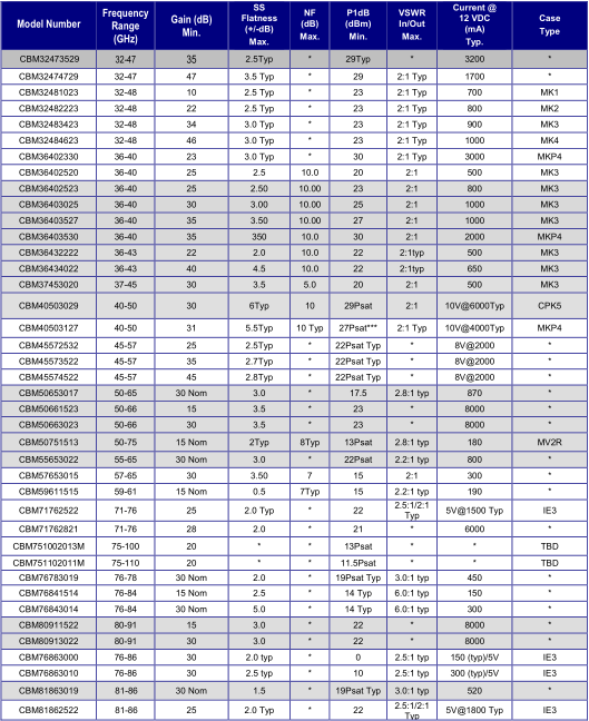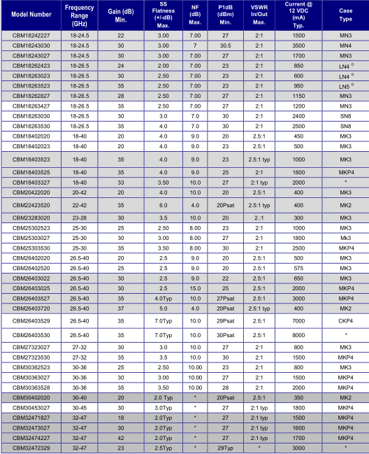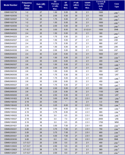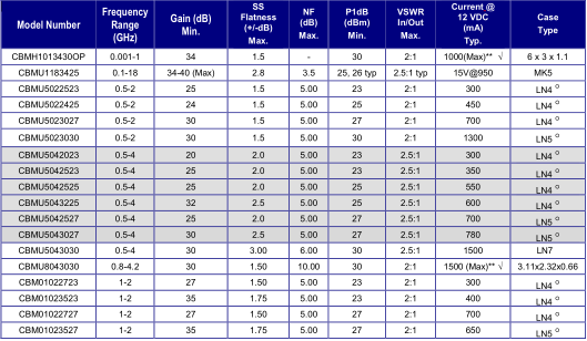 Cernex的CBM系列放大器设计用于广泛的通用应用例如实验室测试设备、仪器仪表和其他需要中等功率的应用输出。使用坚固的带状线电路结构和选定的砷化镓场效应晶体管实现可靠的工作设备。