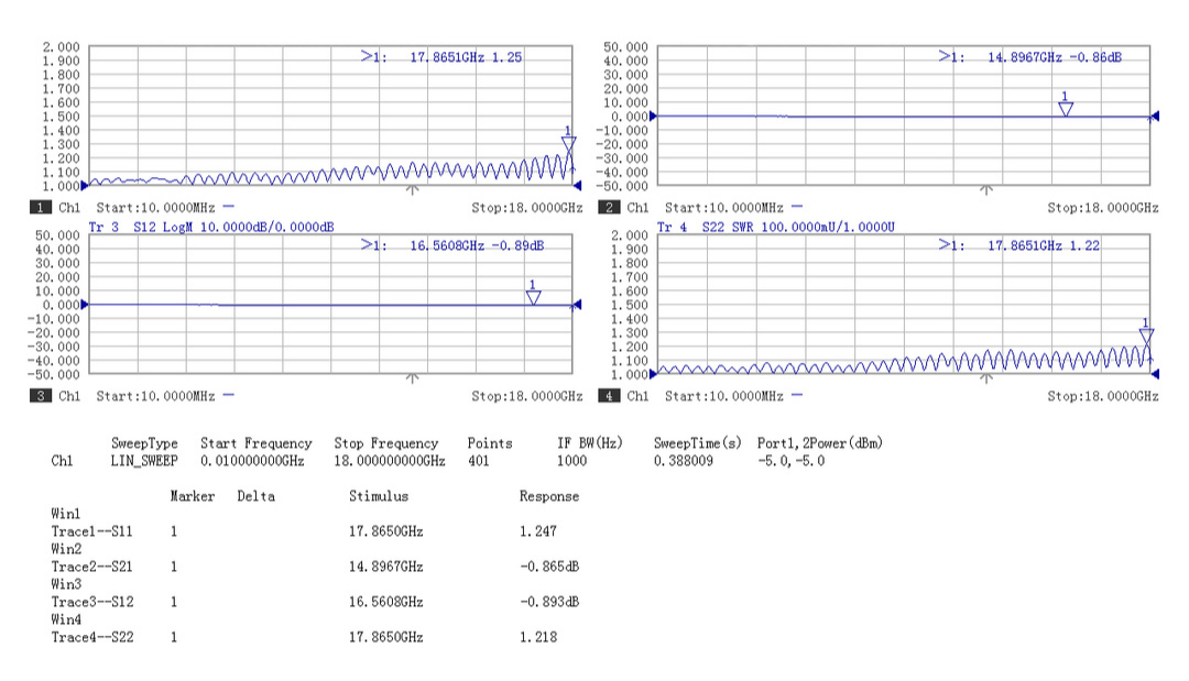 采用3056系列稳幅稳相电缆,幅度一致性及相位一致性较好,线缆弯曲半径小,适合远距离传输射频信号;