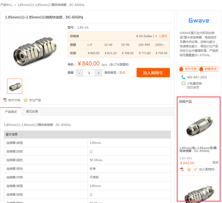 mwstore网站上产品展示的内容如下:(1) 产品的基础信息,例如:名称、型号、描述、货期。