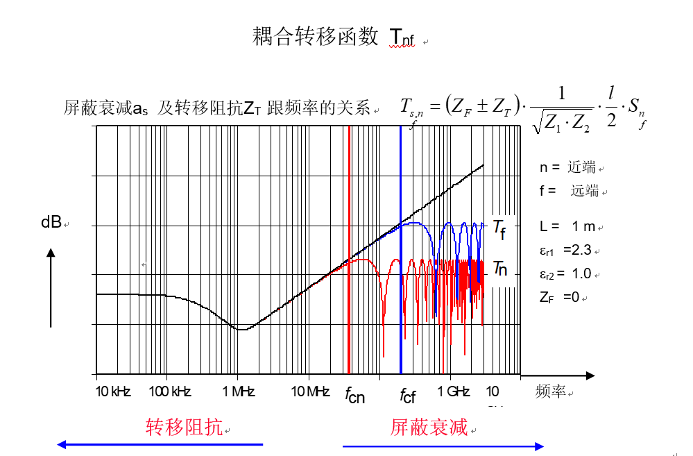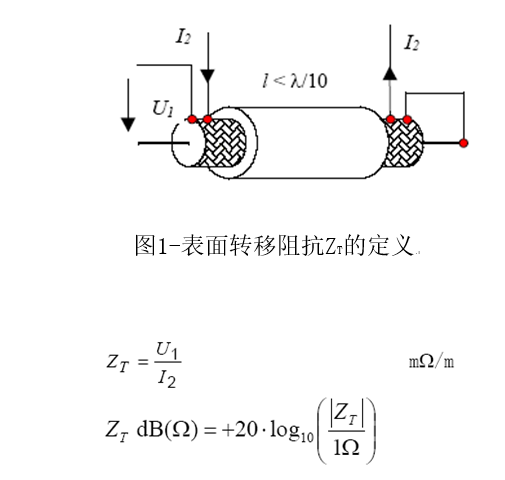 被屏蔽器件如同轴电缆或同轴接插件的耦合转移函数Tn,f(n=近端, f=远端)定义了其屏蔽衰减as与转移阻抗ZT 的关系。
