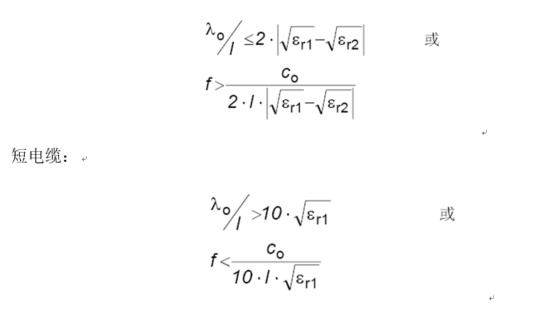 当被测电缆长度远小于其中传播的电磁波波长则称该电缆为(电气长度)短电缆,相对于低于截止频率的低频信号而言,一般: