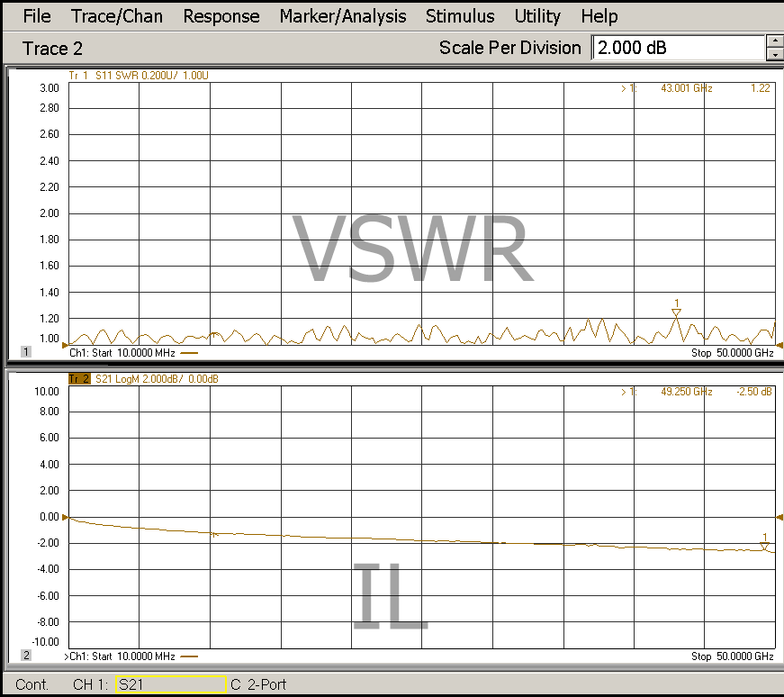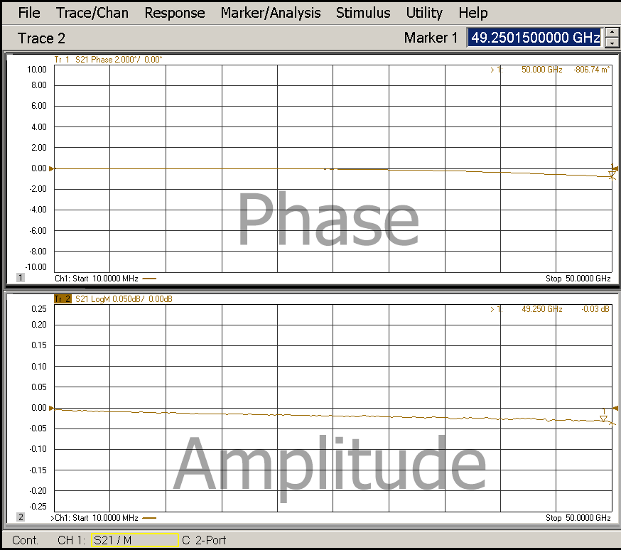 2.4mm母-2.4mm公VNA专用测试电缆,DC-50GHz,配多层复合铠甲