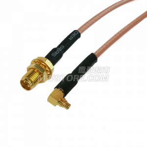SMA 穿墙法兰母 -MMCX 公(直角弯)柔性电缆组件,配接RG316电缆,DC-3GHz