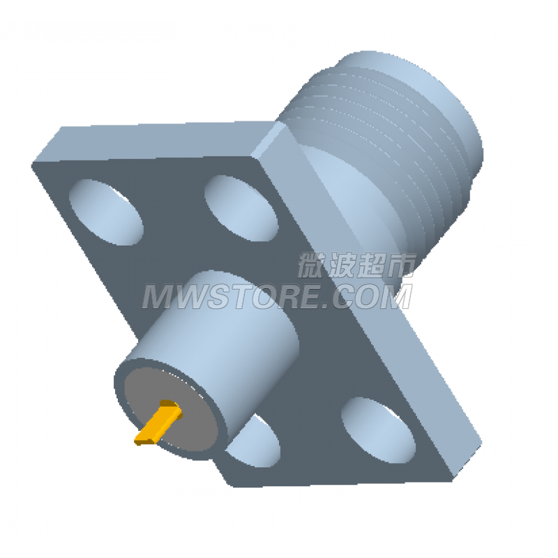 全部分类 >射频连接器 >SMA >介质穿墙连接器 >SMA(母)端接连接器,四孔法兰,DC-26.5GHz