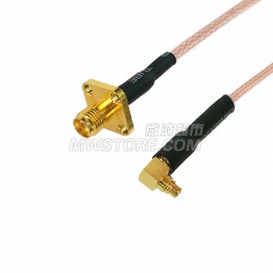SMA 母(四孔法兰) -MMCX弯公柔性电缆组件 ,配接电缆RG178,DC-3GHz