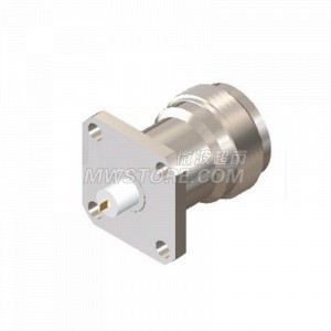 N母连接器,孔距12.7mm四孔法兰,介质穿墙Φ4.1mm宽度4mm,扁针宽度1.27mm,厚度0.2mm,长度1.5mm,DC-18GHz