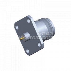 N母连接器,孔距18.3mm四孔法兰,金属穿墙Φ6mm宽度4mm,尾针Φ1.27mm,长度2mm,DC-18GHz