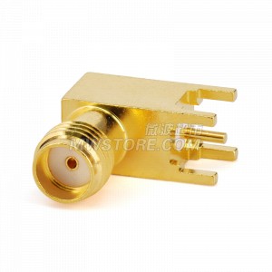 SMA(母)端接连接器,90°直角弯,焊孔5.08mm,中心针Φ0.95mm,DC-6GHz