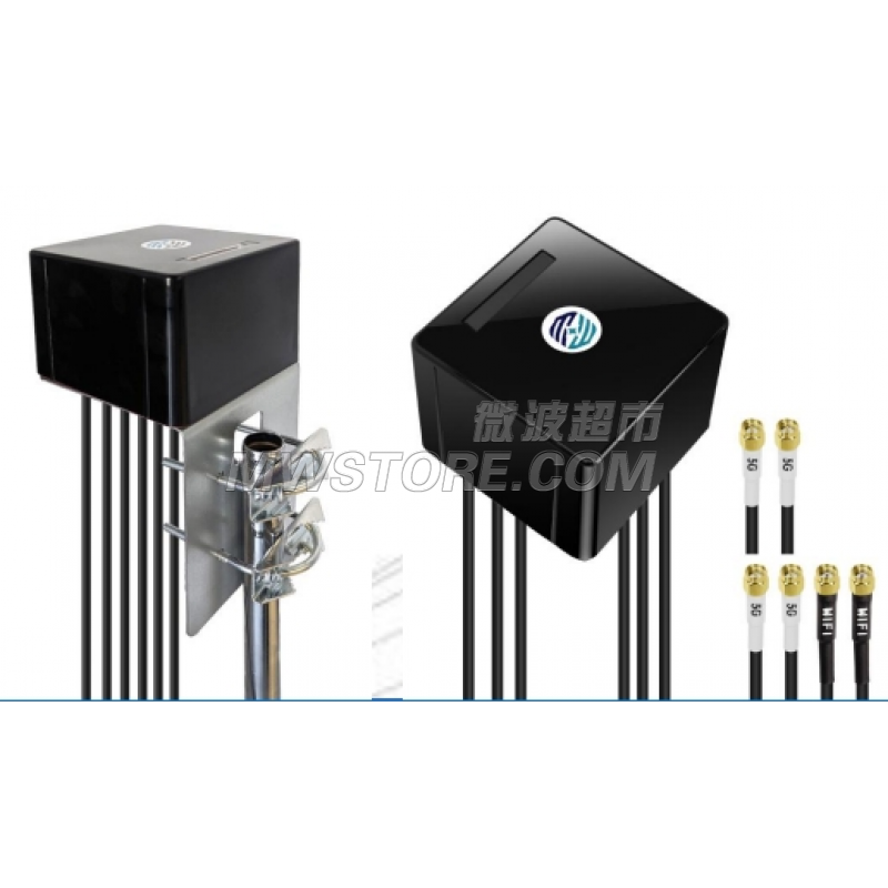 迈斯维5G六合一 组合天线 4X4 MIMO 5G,2X2 MIMO WiFi 7 L 支架及螺杆安装IP67防紫外线 AN_Master_Cubic_4C2W