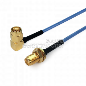 SMA Right Angle Male to SMA Female Bulkhead Cable Using GUT-085-FORM-FEP Coax,DC-6GHz